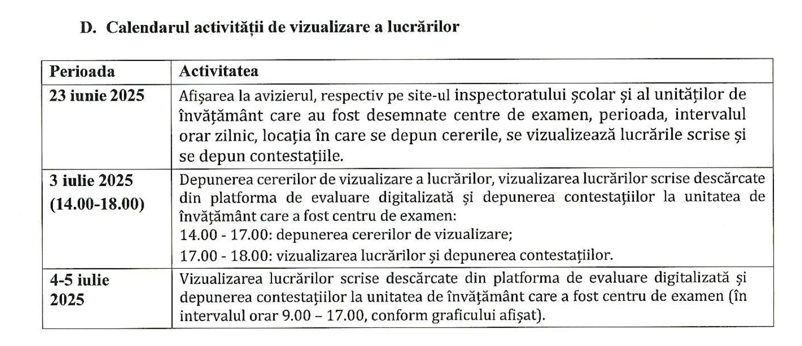 CALENDAR VIZUALIZARE ȘI DEPUNERE CONTESTAȚII